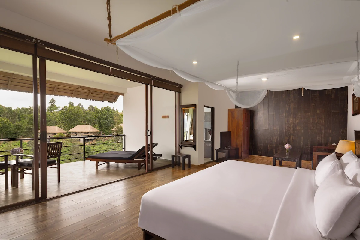 Das Hotel verfügt über insgesamt rund 45 bis 52 Zimmer und Suiten, die alle mit privaten Balkonen oder Terrassen ausgestattet sind und meist einen beeindruckenden Blick auf die umliegenden Teeplantagen und Berge bieten.