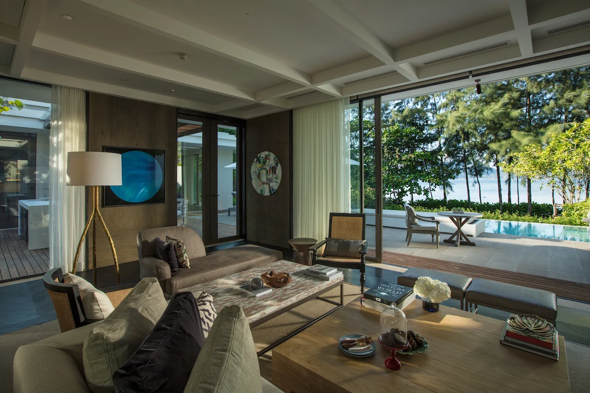 Das Resort verfügt über 71 luxuriöse Pavillons und Villen, die geräumig gestaltet sind und häufig mit privatem Pool oder Plunge Pool, großen Außenterrassen und atemberaubenden Ausblicken überzeugen. Jede Unterkunft verbindet zeitgenössisches Design mit traditionellen thailändischen Akzenten und natürlichen Materialien, um tropische Eleganz und Geborgenheit zu schaffen.