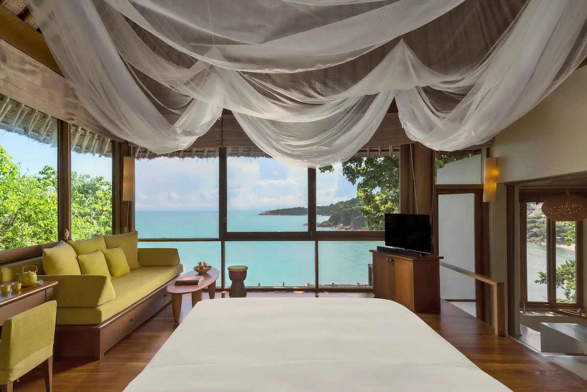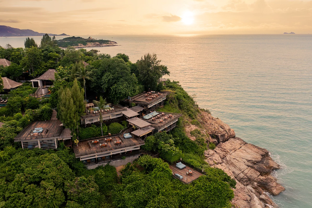 Das Six Senses Koh Samui ist ein exklusives Luxusresort im Norden der Insel Koh Samui in Thailand, das tropische Eleganz, nachhaltiges Design und absolute Privatsphäre in einer der ruhigsten Buchten vereint. Hoch über dem Golf von Thailand gelegen, bieten die Villen spektakuläre Ausblicke auf das Meer und die umliegenden Inseln und schaffen die perfekte Kulisse für einen erholsamen Traumurlaub. Nur etwa 15 Minuten Fahrt vom internationalen Flughafen Koh Samui entfernt, verbindet das Resort hervorragende Erreichbarkeit mit dem Gefühl eines abgelegenen Rückzugsorts. Die Lage in der Region Bophut erlaubt zudem bequemen Zugang zu Sehenswürdigkeiten wie dem Big Buddha, dem charmanten Fisherman’s Village mit Boutiquen und Restaurants sowie den beeindruckenden Na Muang Wasserfällen.