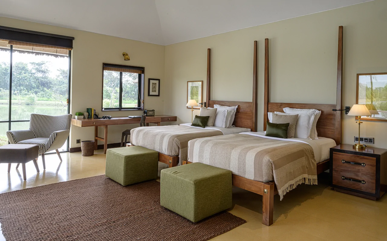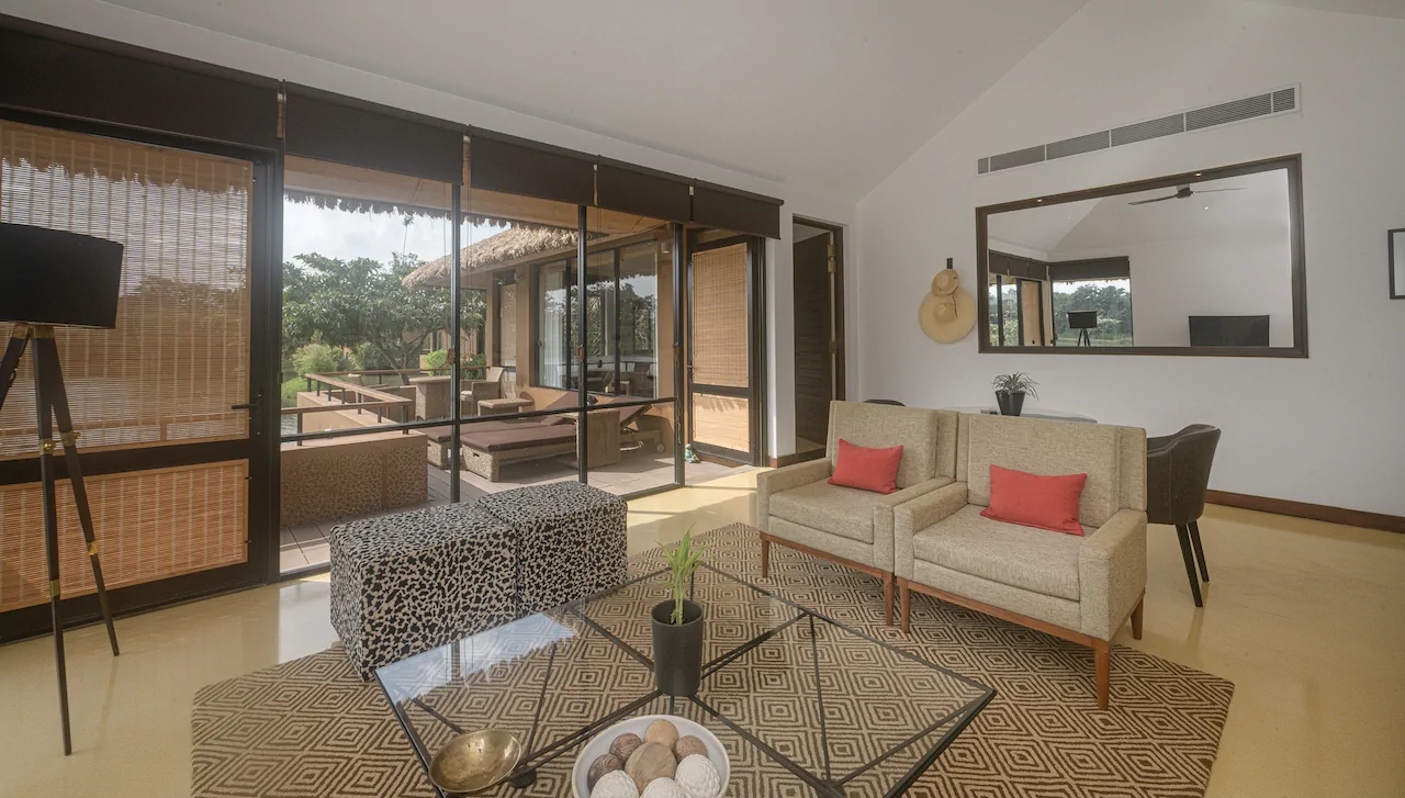 Die insgesamt 49 freistehenden Villen des Sigiriya Water Garden sind großzügig gestaltet und harmonisch in die Wasser- und Gartenlandschaft eingebettet. Große Glasfronten sorgen für lichtdurchflutete Räume und ermöglichen beeindruckende Ausblicke auf die Natur. Gäste haben die Wahl zwischen verschiedenen Villenkategorien, darunter Villen mit Garten- oder Wasserblick sowie Unterkünfte mit privatem Pool.